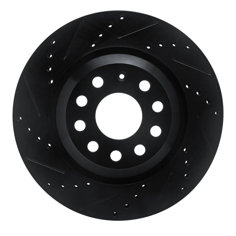 R1 15-25 Volkswagen GTI Rear Left Drilled & Slotted Black Brake Rotor 15.3 lb