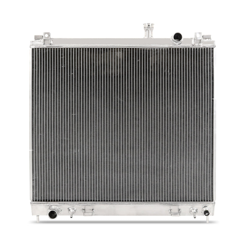 Nissan has a legacy for building high-performance tuner icons like the Skyline and Z-cars, but with the introduction of the Titan in 2004, Nissan threw its hat into the full-size pickup ring. Powered by the 5.6L VK56 V8, the Titan quickly developed a reputation for being a reliable workhorse that could easily keep up with the likes of Ford and Chevy. But, after almost two decades of life as a work truck, or just daily driving, even the most reliable truck is going to show its age and require some maintenance. Your Titan's cooling system is essential to maintaining its reliability, but after thousands of heating and cooling cycles, your radiator has probably seen better days. The stock Titan radiator's plastic end tanks are prone to becoming brittle over time, leading to leaks that can leave you stranded on the job site or side of the road. Even worse, the fragile in-tank transmission cooler can crack at the fittings, leading to coolant in your transmission fluid and catastrophic transmission failure. Mishimoto has created an all-aluminum performance radiator for your 2004-2010 Nissan Titan to prevent these issues and give the Titan a boost in cooling performance. Our radiator features a 2-row core that's 38% thicker than stock with a 37% increase in core volume for improved heat transfer and cooling capacity. The end tanks of the Mishimoto radiator are made from aircraft-grade aluminum that's precision TIG-welded for maximum durability and pressure tolerance. We've also CNC-machined the transmission cooler fittings and made them integral to the lower tank to ensure they never loosen or break, protecting your transmission. Like all Mishimoto radiators, this 2004-2010 Nissan Titan performance aluminum radiator carries our Mishimoto Lifetime Warranty for a lifetime of reliability.
