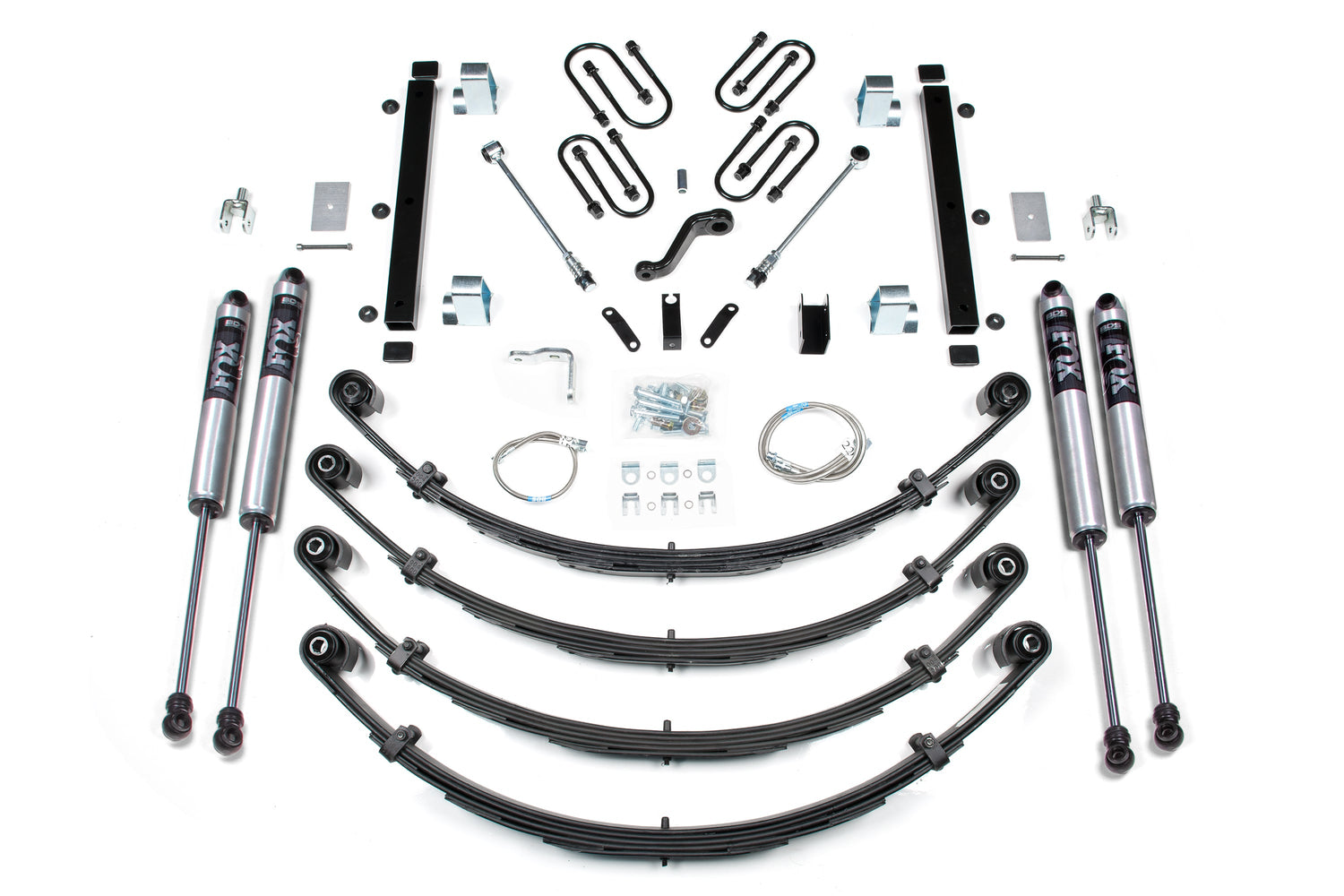 - Front and rear track bar relocation brackets to center the axle