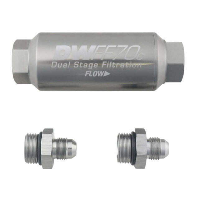 DeatschWerks 6AN 10 Micron 70mm Compact In-Line Fuel Filter Kit 0.7 lb