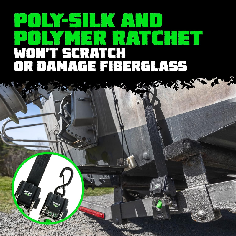 Rhino USA Retractable Transom Straps (2 Pack-Black) 5.2 lb